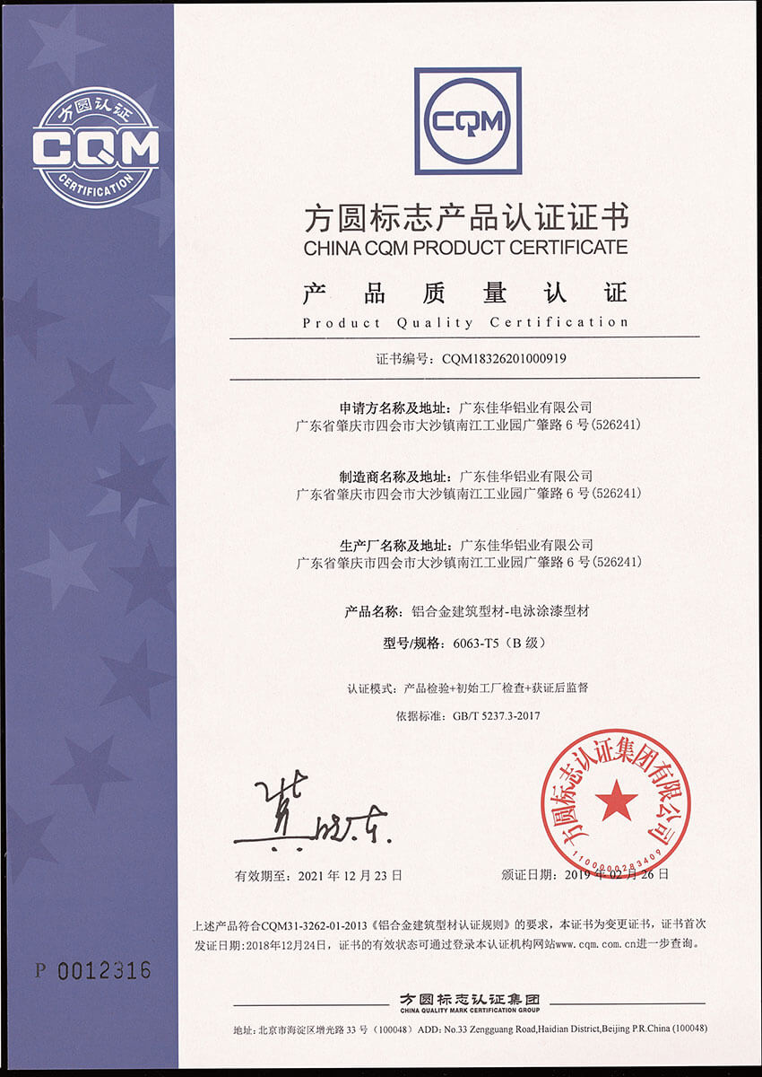 產(chǎn)品質(zhì)量認(rèn)證(噴粉型材)