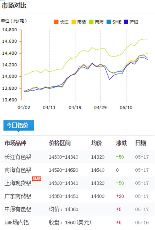 鋁錠價(jià)格今日鋁價(jià)2019-05-17