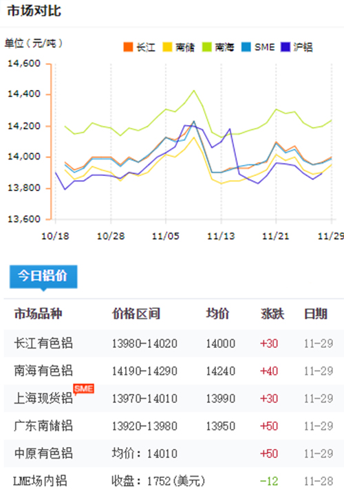 鋁錠價(jià)格今日鋁價(jià)2019-11-28