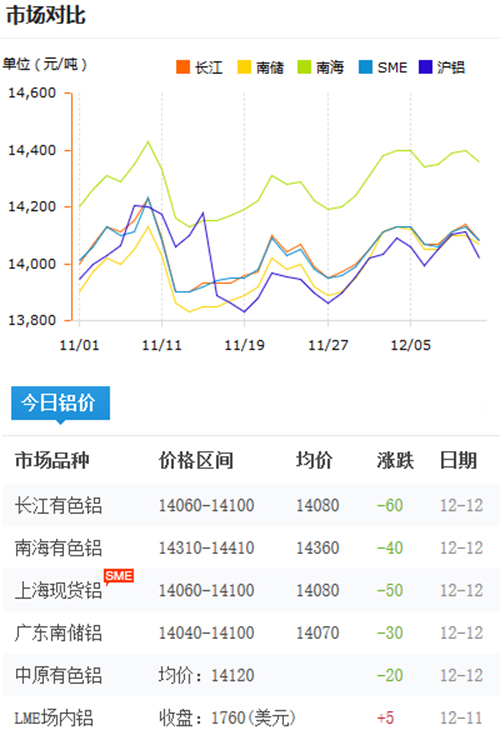 鋁錠價格今日鋁價2019-12-12