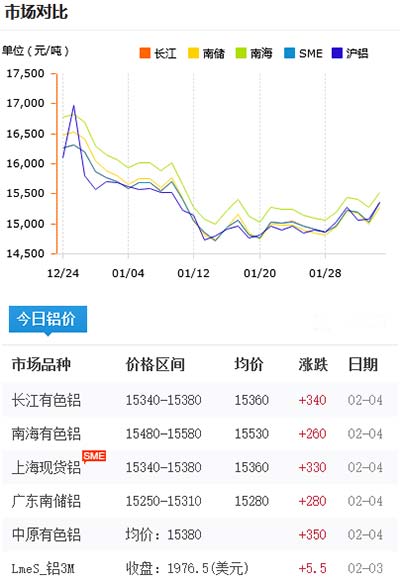 鋁錠價(jià)格今日鋁價(jià)2021-02-04