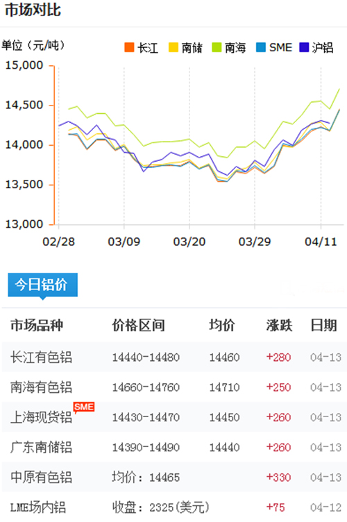 鋁錠價(jià)格今日鋁價(jià)2018-4-13