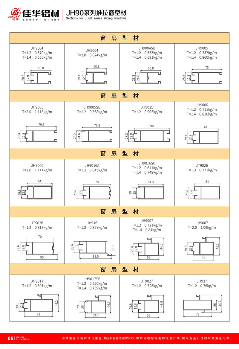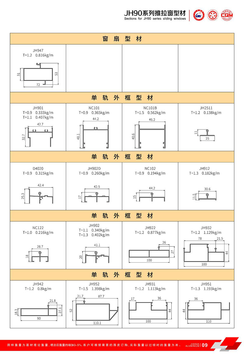 推拉窗系列 平開窗系列 平開門系列 斷橋隔熱系列 幕墻系列 通用型材系列