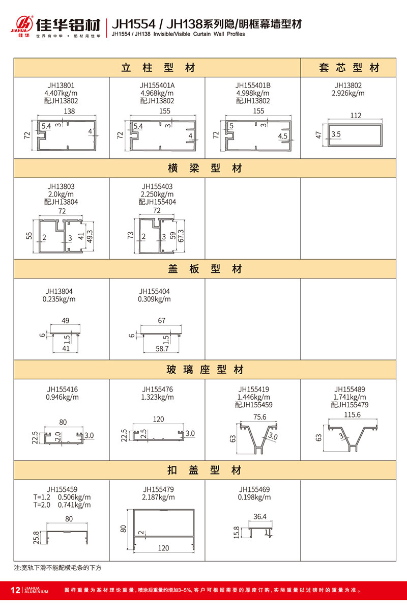 鋁型材規(guī)格型號:JH1554/JH138 B