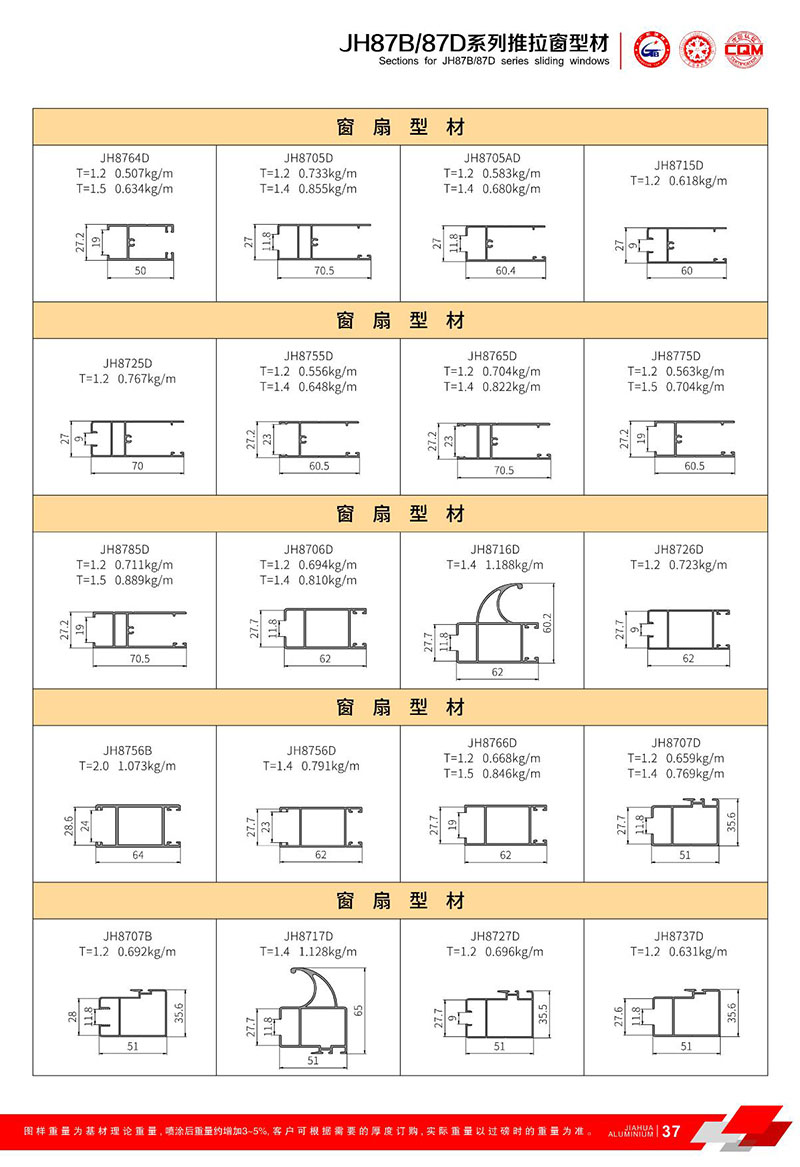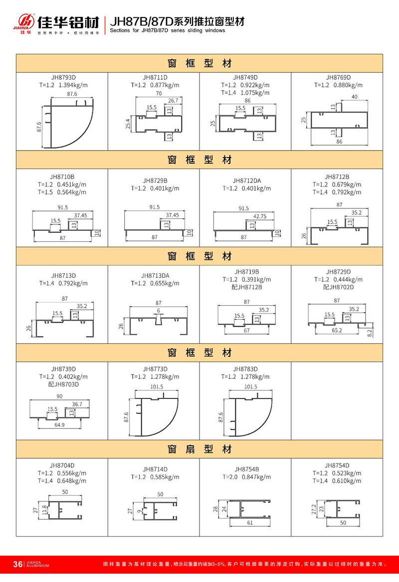 鋁型材規(guī)格型號(hào):JH87B/87D 二
