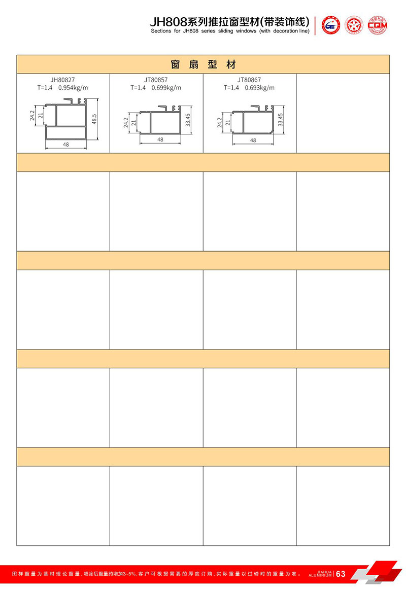 推拉窗系列 平開窗系列 平開門系列 斷橋隔熱系列 幕墻系列 通用型材系列